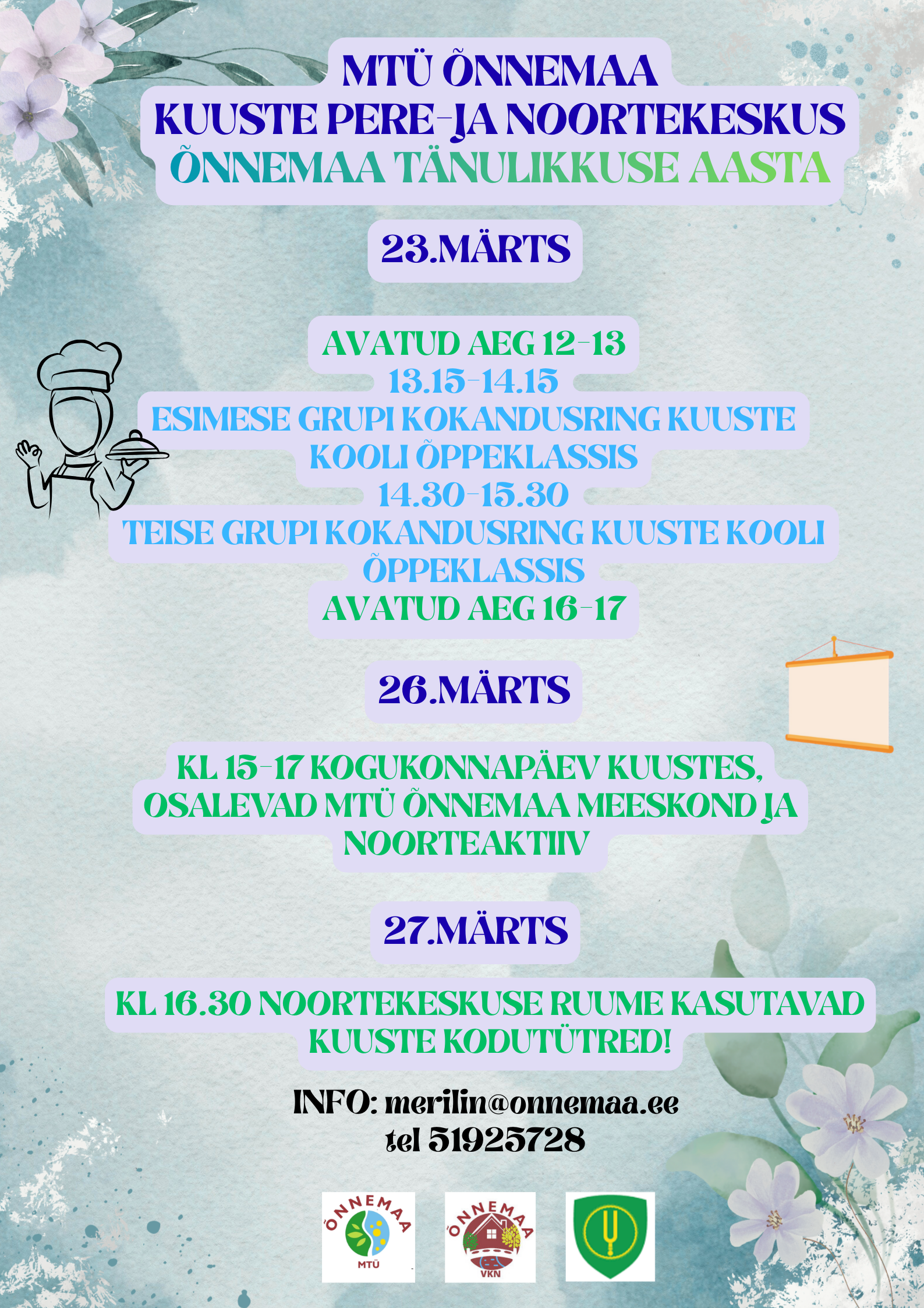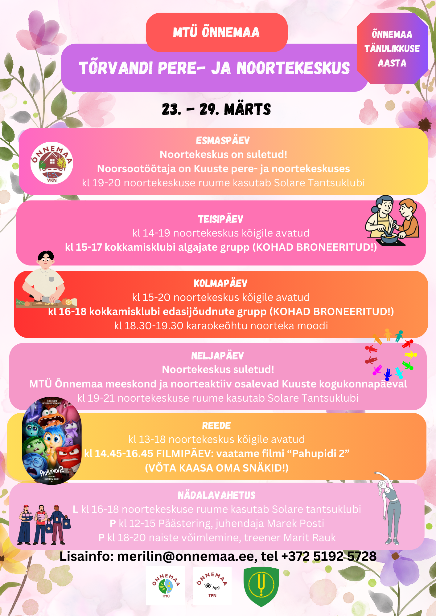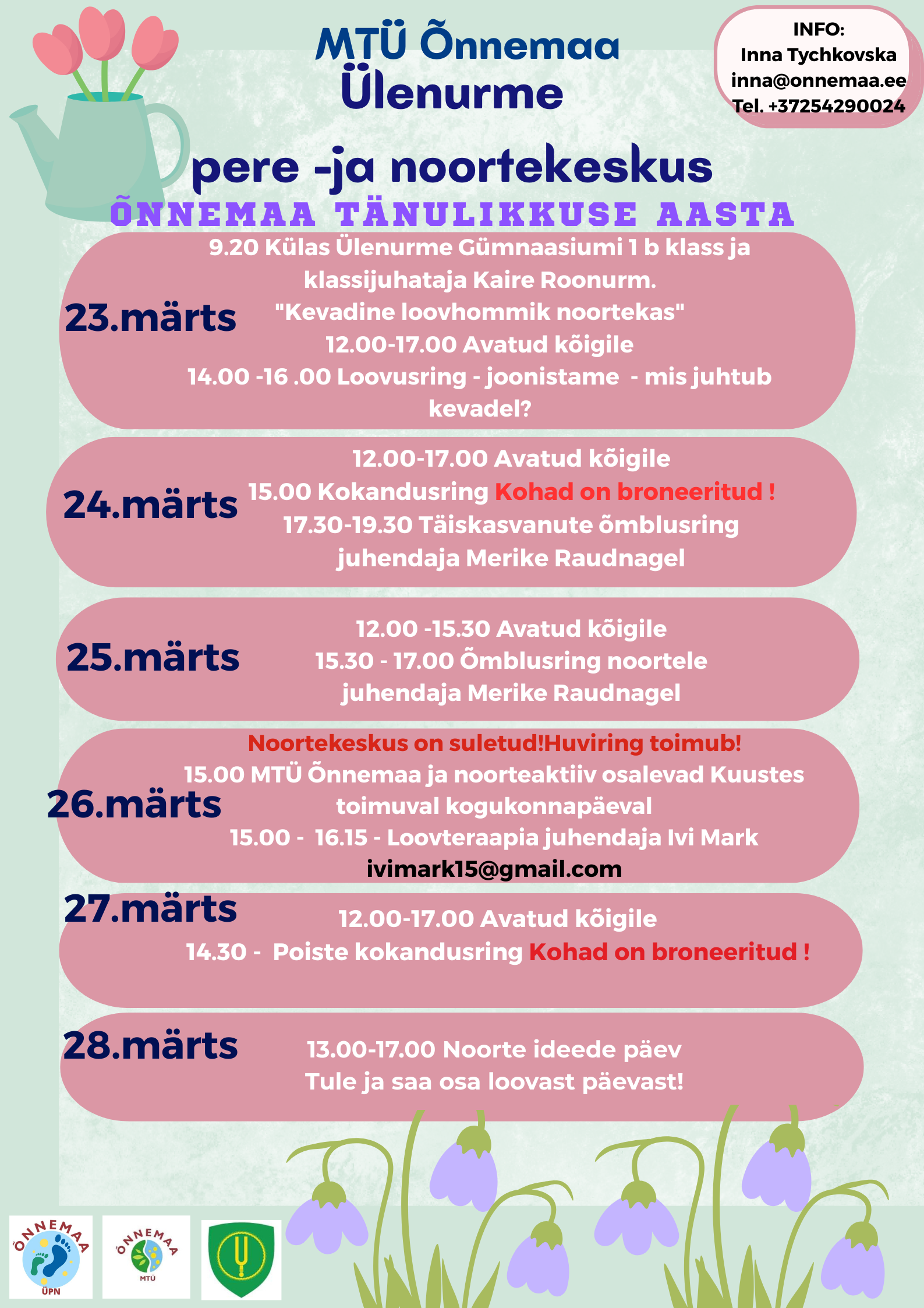 Täna, 18.märtsil, esindasid MTÜ Õnnemaad ja Kambja vald a Kersti Leis, Merilin Miks, Sandra Johanson ja Inna Tychovska Tartumaa Noorsootöötajate Ühendus koosolekul, mis toimus Puhja noorrekeskuses.Täname Kersti Palmi toreda vastuvõtu eest ja täname Marri Nikopensiust